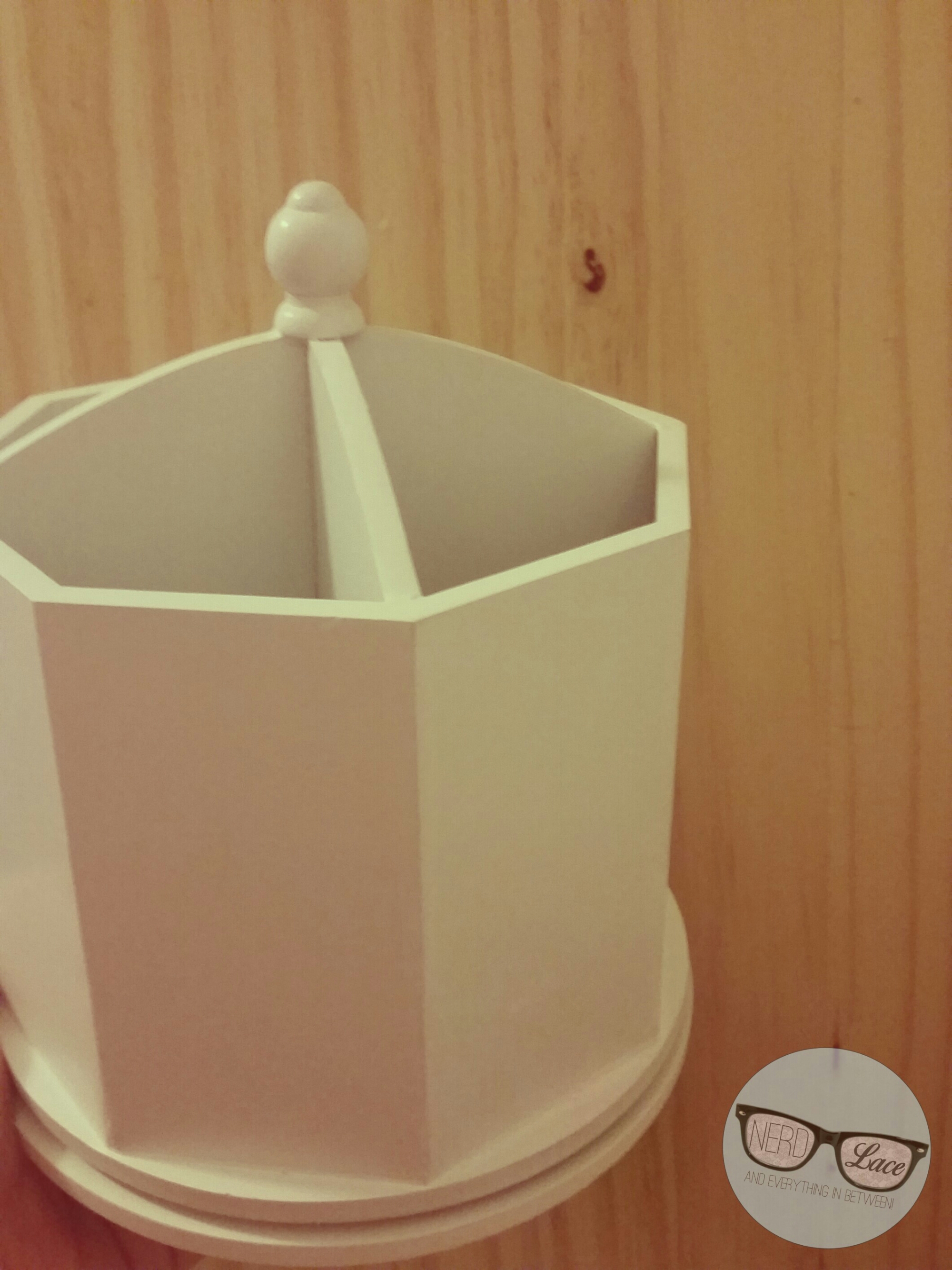 Isn’t it cute? And it spins! Prior to my awesome purchase, I held my brushes in a Mr. Bubbles (the bubble bath) tin. It was adorable! But it was old and falling apart. I originally found it at the dollar spot at Target. Spent $1.00USD and had it for about 7 years.