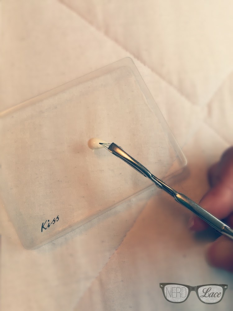 - Using the lash cover, I dab a small amount of glue.