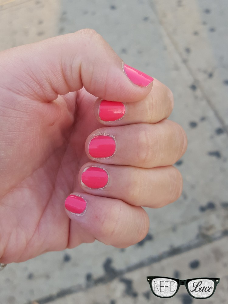 I’ve had the polish on for about a week now. Taking into consideration that I am a very active person, and don’t have a maid (yet), my nails look pretty decent. My cuticles need some TLC thought.